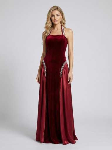 فستان سهرة اكسسوار مخملي بساتان جانبية