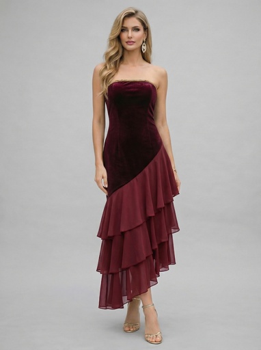 فستان سهرة مخملي بتنورة شيفون متدرجة